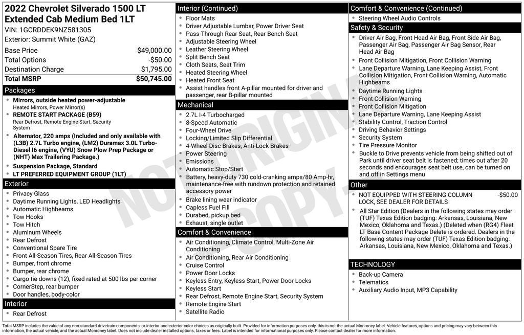- LT Preferred Equipment Group includes standard equipment