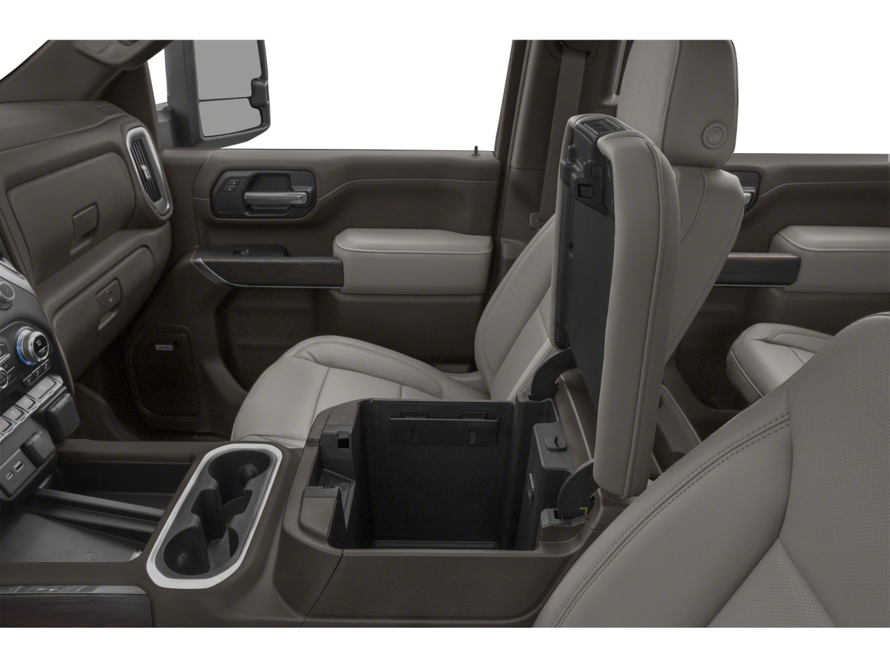 - Seats, front 40/20/40 split-bench with upper covered armrest storage with fixed lumbar (Standard on Crew Cab and Double Cab models only.)