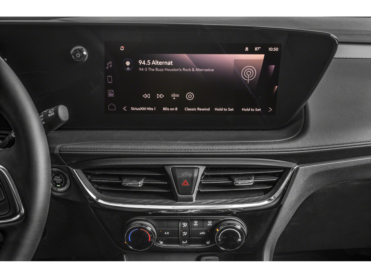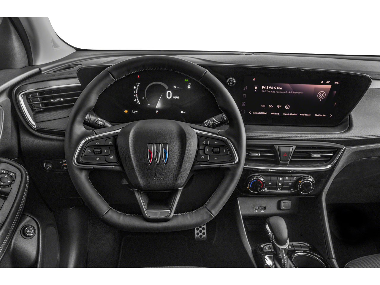 Wi-fi hotspot capable (terms and limitations apply. see onstar.com or dealer for details.)|antenna, roof-mounted|wireless apple carplay/wireless android auto|noise control system, active noise cancellation|audio system feature, 7-speaker system, enhanced performance including amplifier|audio system, 11 diagonal hd color touchscreen, am/fm stereo. additional features for compatible phones include: bluetooth audio streaming for 2 active devices, voice command pass-through to phone, wireless apple carplay and wireless android auto capable|door handles, body-color with chrome strips|headlamps, led|luggage rack, side rails, roof-mounted|tire, compact spare 16 (40.3 cm), located under cargo floor|moldings, upper side window, chrome roofline and gloss black beltline|shutters, front upper grille, active|door pillar trim, blackout|wiper, rear intermittent|intellibeam, auto high beam|moldings, black bodyside|wheel, spare, 16 (40.6 cm) steel|bumper, front and rear, silver-painted insert|wheels, 18 (45.7 cm) gloss black aluminum|wipers, front intermittent with pulse washers|tail lamps, led|quiettuning buick exclusive process that consists of acoustically enhanced windshield and side glass, along with numerous noise canceling acoustic treatments to reduce, block and absorb noise and vibration to create a quiet interior cabin|windshield, solar absorbing|mirrors, outside heated power-adjustable, body-color, manual-folding|mechanical jack with tools|liftgate, manual|glass, deep-tinted|grille, sport touring, high gloss black|moldings, rocker, gloss black|tires, 225/55r18 all-season, blackwall|headlamp control, automatic on and off|lamp, led center high-mounted stop/brake lamp|glass, acoustic, laminated windshield|window, power with driver express-up/down|lighting, interior, overhead courtesy dual reading lamp|usb charging ports, 2 (1 usb type-a, 1 usb type-c), charging only located on the rear of the center console|defogger, rear-window, electric|visors, driver and front passenger illuminated vanity mirrors, covered, sliding|door locks, power with lockout protection|display, eco drive assistance|seat adjuster, front passenger 4-way manual|cruise control, electronic with set and resume speed|headrests, 2-way adjustable, up/down, driver and front passenger|shift knob, satin silver and chrome|cloth with leatherette seat trim|speedometer, miles/kilometers, miles odometer|lighting, interior, dimming instrument panel cluster|windows, power, rear with express-down|keyless open includes extended range remote keyless entry|glovebox, single compartment|usb ports, 2 (1 usb type-a, 1 usb type-c) located in the front of the center console|window, power with front passenger express-down|assist handle, front passenger|theft-deterrent system, electrical, unauthorized entry|steering column, tilt and telescopic, adjustable|seats, front bucket|air filter, pollutant|map pocket, front passenger seatback (deleted when (y55) comfort package is ordered.)|seat adjuster, driver 6-way manual|cargo security cover, rear, stowable under rear cargo load floor|floor mats, color-keyed and carpeted front (deleted when lpo floor mats are ordered.)|buick connected access capable (subject to terms. see onstar.com or dealer for details.)|aux heater, electric, heating/defroster|mirror, inside rearview manual day/night with tilt|air conditioning, single-zone electronic|key system, 2 keys|vehicle health management provides advanced warning of vehicle issues|hvac duct, rear, underneath front seat|floor mats, color-keyed and carpeted rear (deleted when lpo floor mats are ordered.)|seat, rear 40/60 split-bench, folding (60 percent on passenger side)|steering wheel, wrapped (flat-bottom.)|remote panic alarm|steering wheel controls mounted audio, cruise control, driver information center, forward collision alert gap adjust and phone interface controls|knee bolster, driver and front passenger|assist handles, rear outboard|driver information center 8 diagonal fully digital color display, reconfigurable|compass display|lighting, interior, roof, rear courtesy|lighting, rear cargo compartment lamp|console, floor, with armrest|map pocket, driver seatback|engine air filtration monitor|trailering provisions includes 4-wire electrical harness and 4-pin sealed connector|all-wheel drive with driver mode selector|axle, 3.17 final drive ratio|brake, electronic parking|steering, power, variable effort, electric|suspension, ride and handling|fuel system, electronic, returnless|transmission, 9-speed automatic, 9t4x, gen 1|keyless start, push button|gvwr, 4409 lbs. (2000 kg)|brakes, front and rear, electric|engine control, stop/start system disable switch, non-latching|capless fuel fill|engine control, stop/start system|brakes, 4-wheel antilock, 4-wheel disc|engine, ecotec 1.3l turbo (gm-estimated 155 hp [115 kw]