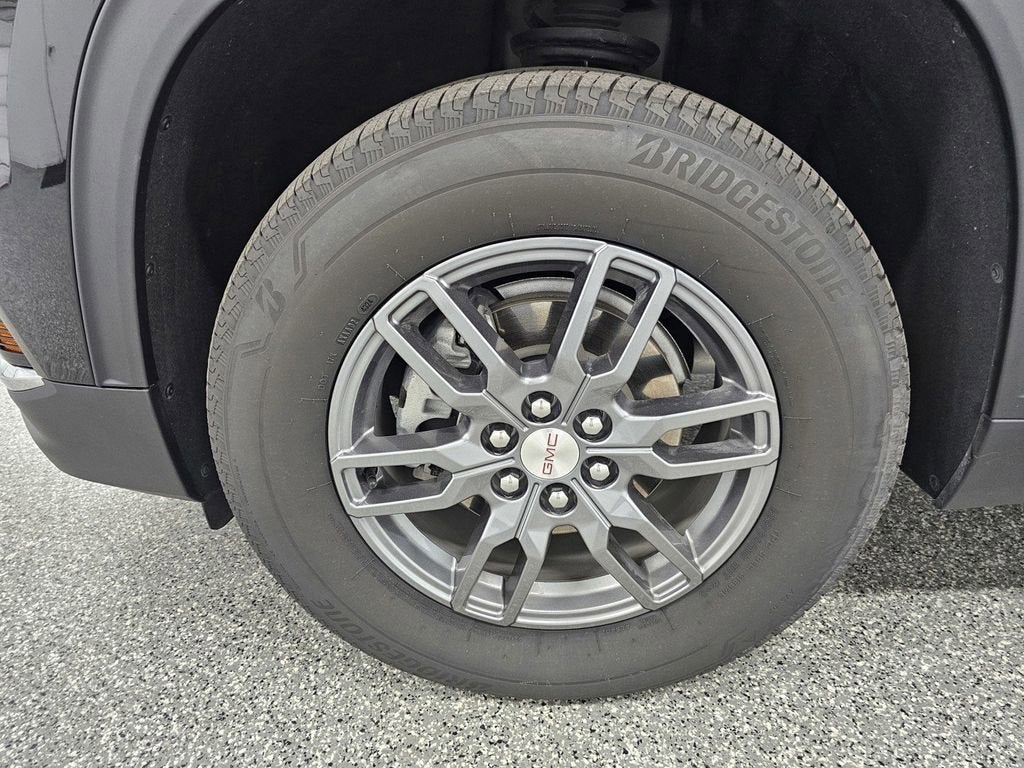15 diagonal premium gmc infotainment system with high contrast display, with google built-in compatibility, including navigation capability, color touch-screen, multi-touch display, connected apps, personalized profiles for each driver's settings, natural voice recognition and phone integration for wireless apple carplay/wireless android auto for compatible phones|active noise cancellation, driveline|active noise cancellation, engine noise control|wi-fi hotspot capable (terms and limitations apply. see onstar.com or dealer for details.)|audio system feature, bose premium 12-speaker system with sub-woofer|roof rails|window, rear side, solar absorbing, privacy tinting|wheel, spare, 18 x 4.5 (45.7 cm x 11.4 cm) steel|wiper, rear intermittent with washer|door handles, outside, body-color|wheel opening moldings|wheels, 18 x 7.5 (45.7 cm x 19 cm), aluminum|antenna, body-color, roof-mounted shark fin|tires, p255/65r18 all-season blackwall|mirrors, outside heated, power-adjustable, manual-folding, body-color with integrated turn signal indicators|tire, compact spare, t135/70r18, blackwall|headlamps, intellibeam, automatic high-beam|wipers, front intermittent with washers|moldings, door upper, low gloss black|liftgate, autosense, hands-free power programmable|glass, deep-tinted (all windows, except light-tinted glass on windshield and driver- and front passenger-side glass)|moldings, rocker, narrow|moldings, bodyside, molded color|seat adjuster, driver 8-way power|seat adjuster, driver 2-way power lumbar|compass display|remote keyless entry, extended range with lock and unlock feature|vehicle health management provides advanced warning of vehicle issues|headrest, 3rd row center|floor mats, rear, carpeted (included with (bkg) front carpeted floor mats. deleted when (ria) first and second row all-weather floor liners, lpo or (vav) first and second row all-weather floor mats, lpo are ordered.)|lighting, interior with theater dimming, cargo compartment, reading lights for front seats, second row reading lamps integrated into dome light, door-and tailgate-activated switches and illuminated entry and exit feature|usb ports, 2 (first row) charge/data ports located on console, 1 type c and 1 type a|mirror, inside rearview, manual tilt, day/night|driver information center, 11 diagonal driver information center with high contrast display|steering wheel, heated|remote start|keyless open and start|sensor, humidity and windshield temperature|power outlet, 120-volt, 3-prong household style located on the rear of center console (included with (cwm) assisted driving package.)|seats, heated driver and front passenger|usb ports, 2 in front (type-a and type-c), 2 in second row (type-a and type-c) and 2 in third row (type-a)|adaptive cruise control|wireless charging for select devices|defogger, rear-window electric|heater, electric, heating/defroster|seats, front bucket|door locks, power programmable with lockout protection|air conditioning, rear|floor mats, front, carpeted (included with (bkl) rear carpeted floor mats. deleted when (ria) first and second row all-weather floor liners, lpo or (vav) first and second row all-weather floor mats, lpo are ordered.)|rear camera washer|cup holders 4 in front center console, 2 in front door panel, 2 in 2nd row door panel and 2 in 3rd row, 10 total|windows, power with driver express-up and all windows express-down|steering column, tilt and telescopic|onstar basics (onstar fleet basics for fleet) drive confidently with core onstar services including remote commands, built-in voice assistance, real-time traffic and navigation, and automatic crash response to help if you're in need (onstar basics includes remote commands, navigation, voice assistance, and automatic crash response, for eligible vehicles with compatible software. for my25 vehicles, onstar basics is standard for 8 years; onstar plan, working electrical system, cell reception and gps signal required. onstar links to emergency services. service coverage varies with conditions and location. service availability, features and functionality vary by device and software version. see onstar.com for details and limitations.)|display, automatic occupant sensing|steering wheel, sport-style|console, front center with 4 cup holders and storage, includes rear storage|seating, 8-passenger|usb ports, single charge|seat adjuster, front passenger 4-way manual|power outlets one located in the center stack under the climate controls and one located in the rear cargo area|air conditioning, tri-zone automatic climate control with individual climate settings for driver, right front passenger and rear seat occupants|usb ports, rear, dual, charge-only|coretec seat trim|cooling system, heavy-duty|engine control, stop/start system disable switch|brakes lining wear indicator|front wheel drive|transmission, 8-speed automatic|e10 fuel capable|alternator, 220 amps|exhaust, dual outlet with bright tips|brakes, 4-wheel antilock, 4-wheel disc, 17 front and rear|electronic precision shift, column mounted button and trigger based transmission interface|mechanical jack with tools|gvwr, 6173 lbs. (2800 kg)|suspension, ride and handling macpherson struts for front and independent 5-link rear|axle, 3.49 final drive ratio|engine, 2.5l turbo dohc sidi with variable valve timing (vvt) (328 hp [244 kw]