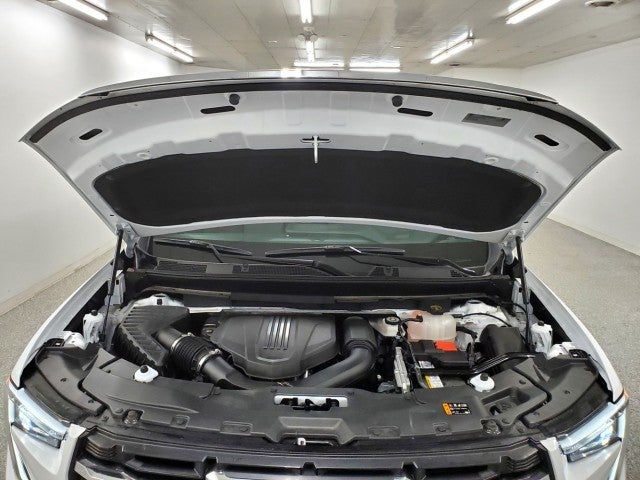 15 diagonal premium gmc infotainment system with high contrast display, with google built-in compatibility, including navigation capability, color touch-screen, multi-touch display, connected apps, personalized profiles for each driver's settings, natural voice recognition and phone integration for wireless apple carplay/wireless android auto for compatible phones|active noise cancellation, driveline|active noise cancellation, engine noise control|wi-fi hotspot capable (terms and limitations apply. see onstar.com or dealer for details.)|audio system feature, bose premium 12-speaker system with sub-woofer|roof rails|window, rear side, solar absorbing, privacy tinting|wheel, spare, 18 x 4.5 (45.7 cm x 11.4 cm) steel|wiper, rear intermittent with washer|door handles, outside, body-color|wheel opening moldings|wheels, 18 x 7.5 (45.7 cm x 19 cm), aluminum|antenna, body-color, roof-mounted shark fin|tires, p255/65r18 all-season blackwall|mirrors, outside heated, power-adjustable, manual-folding, body-color with integrated turn signal indicators|tire, compact spare, t135/70r18, blackwall|headlamps, intellibeam, automatic high-beam|wipers, front intermittent with washers|moldings, door upper, low gloss black|liftgate, autosense, hands-free power programmable|glass, deep-tinted (all windows, except light-tinted glass on windshield and driver- and front passenger-side glass)|moldings, rocker, narrow|moldings, bodyside, molded color|seat adjuster, driver 8-way power|seat adjuster, driver 2-way power lumbar|compass display|remote keyless entry, extended range with lock and unlock feature|vehicle health management provides advanced warning of vehicle issues|headrest, 3rd row center|floor mats, rear, carpeted (included with (bkg) front carpeted floor mats. deleted when (ria) first and second row all-weather floor liners, lpo or (vav) first and second row all-weather floor mats, lpo are ordered.)|lighting, interior with theater dimming, cargo compartment, reading lights for front seats, second row reading lamps integrated into dome light, door-and tailgate-activated switches and illuminated entry and exit feature|usb ports, 2 (first row) charge/data ports located on console, 1 type c and 1 type a|mirror, inside rearview, manual tilt, day/night|driver information center, 11 diagonal driver information center with high contrast display|steering wheel, heated|remote start|keyless open and start|sensor, humidity and windshield temperature|power outlet, 120-volt, 3-prong household style located on the rear of center console (included with (cwm) assisted driving package.)|seats, heated driver and front passenger|usb ports, 2 in front (type-a and type-c), 2 in second row (type-a and type-c) and 2 in third row (type-a)|adaptive cruise control|wireless charging for select devices|defogger, rear-window electric|heater, electric, heating/defroster|seats, front bucket|door locks, power programmable with lockout protection|air conditioning, rear|floor mats, front, carpeted (included with (bkl) rear carpeted floor mats. deleted when (ria) first and second row all-weather floor liners, lpo or (vav) first and second row all-weather floor mats, lpo are ordered.)|rear camera washer|cup holders 4 in front center console, 2 in front door panel, 2 in 2nd row door panel and 2 in 3rd row, 10 total|windows, power with driver express-up and all windows express-down|steering column, tilt and telescopic|onstar basics (onstar fleet basics for fleet) drive confidently with core onstar services including remote commands, built-in voice assistance, real-time traffic and navigation, and automatic crash response to help if you're in need (onstar basics includes remote commands, navigation, voice assistance, and automatic crash response, for eligible vehicles with compatible software. for my25 vehicles, onstar basics is standard for 8 years; onstar plan, working electrical system, cell reception and gps signal required. onstar links to emergency services. service coverage varies with conditions and location. service availability, features and functionality vary by device and software version. see onstar.com for details and limitations.)|display, automatic occupant sensing|steering wheel, sport-style|console, front center with 4 cup holders and storage, includes rear storage|seating, 8-passenger|usb ports, single charge|seat adjuster, front passenger 4-way manual|power outlets one located in the center stack under the climate controls and one located in the rear cargo area|air conditioning, tri-zone automatic climate control with individual climate settings for driver, right front passenger and rear seat occupants|usb ports, rear, dual, charge-only|coretec seat trim|cooling system, heavy-duty|engine control, stop/start system disable switch|brakes lining wear indicator|front wheel drive|transmission, 8-speed automatic|e10 fuel capable|alternator, 220 amps|exhaust, dual outlet with bright tips|brakes, 4-wheel antilock, 4-wheel disc, 17 front and rear|electronic precision shift, column mounted button and trigger based transmission interface|mechanical jack with tools|gvwr, 6173 lbs. (2800 kg)|suspension, ride and handling macpherson struts for front and independent 5-link rear|axle, 3.49 final drive ratio|engine, 2.5l turbo dohc sidi with variable valve timing (vvt) (328 hp [244 kw]